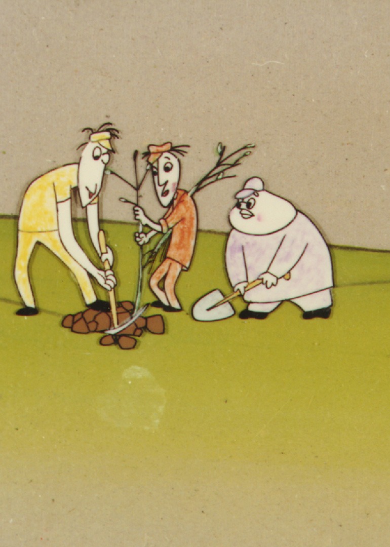 胖子,高个子和矮子是三个懒惰的兄弟,这天三人一起去种树。可是他们不懂分工与配合,高个子卖力地挖坑,胖子和矮子却在一边偷懒。等高个子挖好了坑,矮子随意安插树苗,却因为坑挖的深浅大小不一,导致树苗的根部无法入土。胖子紧随其后浇水,却拿了一个漏水的舀勺,树苗只是滴滴嗒嗒地喝了几滴水。很快树苗就干死了。可是三人并未吸取教训,继续这样种树,并且闹出了各种笑话。丰收的日子到了,看着别人收获了一筐又一筐的果子,三兄弟开始反省了。